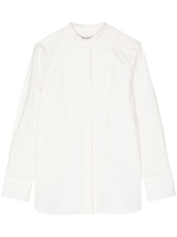 collarless cotton shirt Highlights - White - Cotton - Collarless - Concealed front button fastening - Long sleeves - Buttoned cuffs - Curved hem Imported Composition Cotton 100%