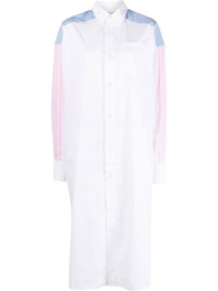 colour-block cotton shirt dress white/multicolour cotton colour-block panelled design classic collar chest patch pocket button fastening long sleeves buttoned cuffs straight hem Imported Composition Cotton 100% Washing instructions Machine Wash