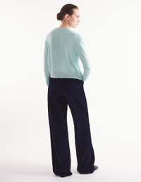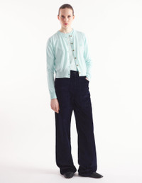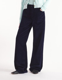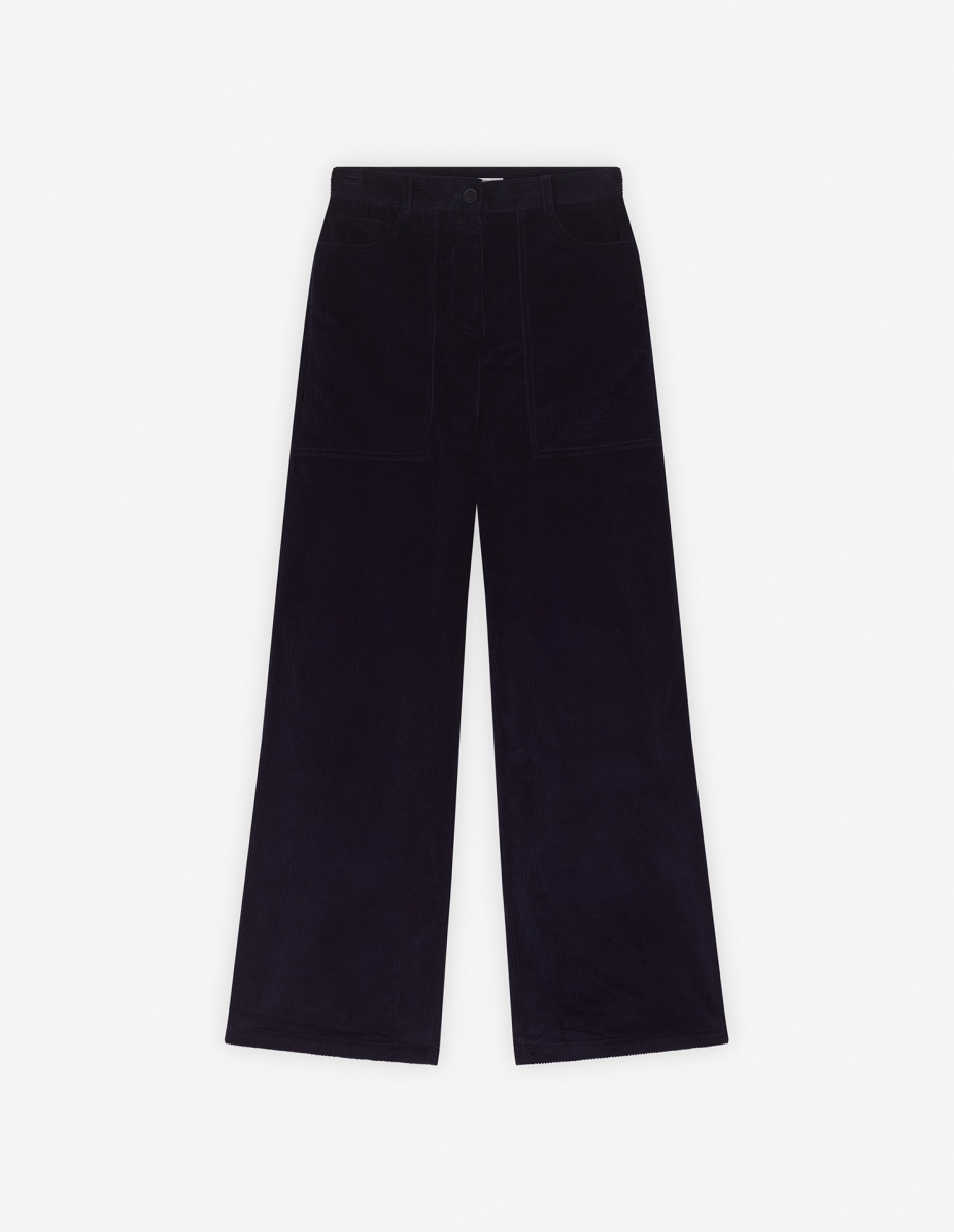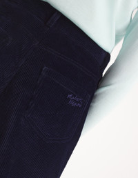 DETAILS Corduroy pants. High waisted with "Maison Kitsune Handwriting" signature embroidered on the back pocket. - Plain corduroy pants - High waisted - Belt loops at the waistband - Button closure with hidden zipper - Two topstitched slash pockets on the sides - Ticket pocket - Two patch back pockets - Embroidered "Maison Kitsune Handwriting" signature on the back pocket NW01104WW0116-P480 SIZE & CUT Cut: OTHER Sizing: WOMEN MATERIAL Main Material: 100% COTTON, Pocket lining: 100% COTTON TRACEABILITY Made in Bulgaria