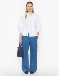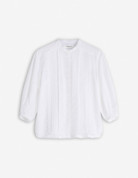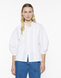 DETAILS Cotton poplin shirt with English embroidery. Oversized cut with elaborate details. - Plain cotton poplin shirt - Oversized cut - Officer's collar - Hidden button closure - Long balloon sleeves finished off with slim button cuffs - Pleats and English embroidery with Profile Fox and Daisy details at the front - Plain back with gathers - Rounded hem OW00428WC5010-P100 SIZE & CUT Cut: OVERSIZE Sizing: WOMEN The female model is 9.1 and is wearing size S MATERIAL 100% COTTON TRACEABILITY Made in Bulgaria
