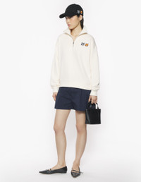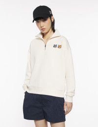DETAILS Half zip light fleece sweatshirt. Comfort cut with embroidered Double Bold Fox Head patches. - Plain fleece sweatshirt - Comfort cut - Half zip collar - Double Bold Fox Head patches embroidered on the chest - Long sleeves - Ribbing at the collar, cuffs, and waistband - Plain back OW211CFKM0321-P702 SIZE & CUT Cut: COMFORT Sizing: WOMEN The female model is 5 and is wearing size S MATERIAL Main Material: 100% COTTON, RIB: 98% COTTON, 2% ELASTANE TRACEABILITY Made in Portugal