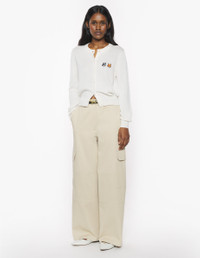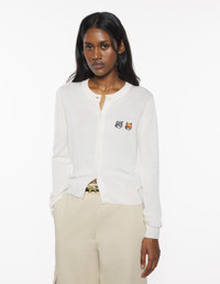DETAILS Merino wool cardigan. Regular cut with Double Bold Fox Head patches embroidered. - Merino wool cardigan - Regular cut - Crewneck - Embroidered Double Bold Fox Head patches on the chest - Button closure - Long sleeves - Ribbing at the neckline, cuffs, and waist OW051CFKT1036-P702 SIZE & CUT Cut: REGULAR Sizing: WOMEN The female model is 9.1 and is wearing size S MATERIAL 100% MERINOS EXTRAFINE WOOL TRACEABILITY Made in Portugal