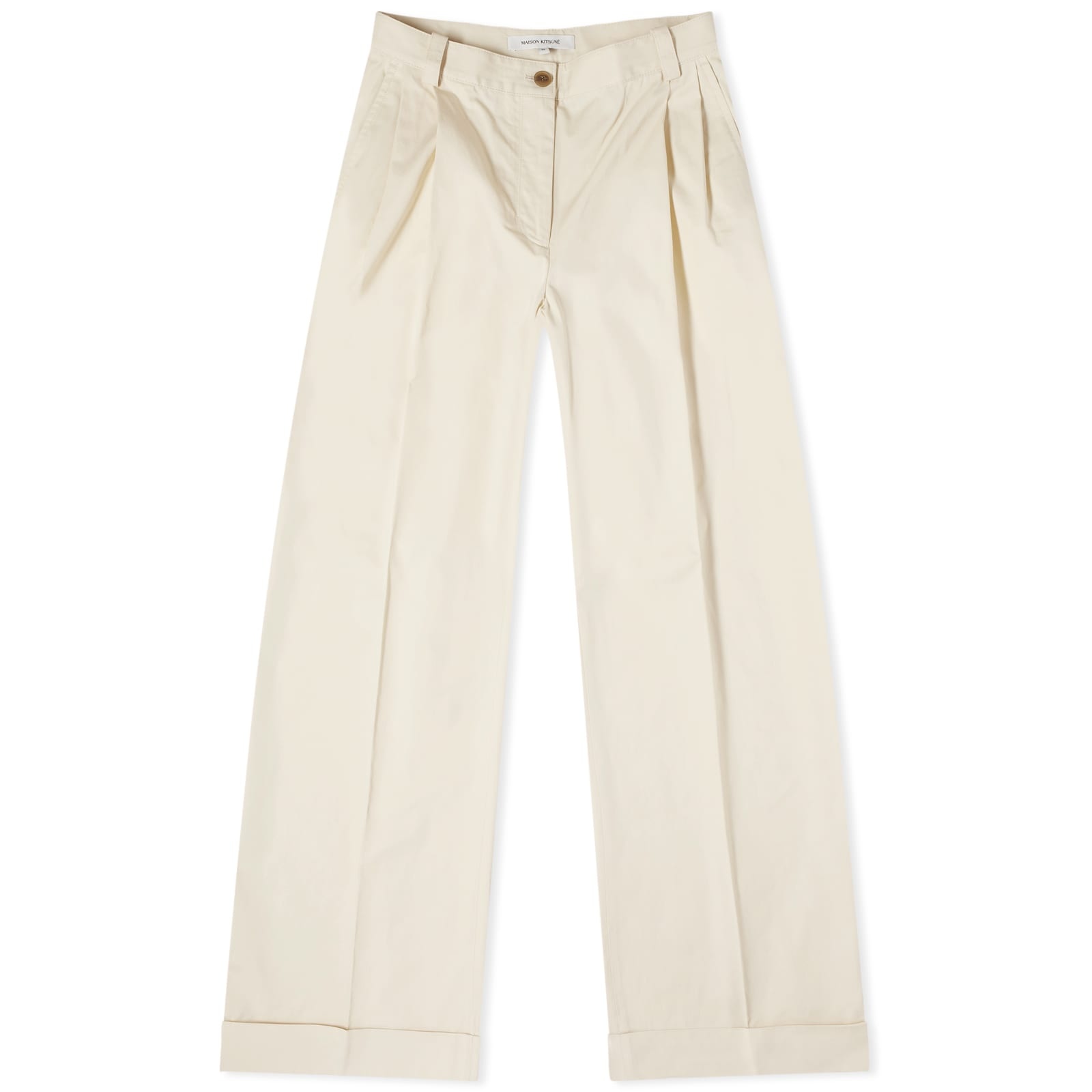 Maison Kitsuné blends Parisian elegance with Tokyo street style. These double pleat pants, designed for a loose fit and finished with Maison Kitsuné handwriting embroidery under the back pocket, effortlessly marry style and comfort. - 100% Cotton - Loose Fit - Double Pleats - Belt Loops - Zip Fly & Button Closure - 2 Side Pockets - Flap Back Pocket - Embroidered Branding - Machine Wash 40°C