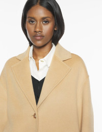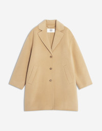 DETAILS Double-face wool coat. - Double face wool coat - Comfort fit with rounded silhouette and shoulder line - Tailored collar - Maison Kitsune engraved simple button closure - Two side welt pockets - Profile Fox interior chain at the collar PW02211WQ4067-0115 SIZE & CUT Cut: COMFORT Sizing: WOMEN The female model is 5.7 and is wearing size 36 MATERIAL Main Material: 100% WOOL, Pocket lining: 100% POLYESTER TRACEABILITY Made in China