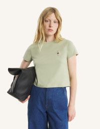 DETAILS T-shirt in classic cotton jersey (180g). Cropped fit with Dressed Fox embroidered patch on the chest. - T-shirt in classic cotton jersey (180g) - Cropped fit - Crew neck - Dressed Fox embroidered patch on the chest - Ribbing at the neckline QW00113KJ7026-0451 SIZE & CUT Cut: CROPPED Sizing: WOMEN The female model is 5.8 tall and wears a size S MATERIAL 100% ORGANIC COTTON TRACEABILITY Made in Portugal