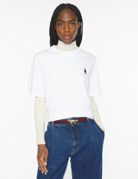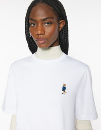 DETAILS T-shirt with short sleeves in cotton jersey (240g). Comfort fit with Dressed Fox embroidered patch on the chest. - Cotton jersey (240g) T-shirt - Organic cotton - Comfort fit - Short sleeves - Crew neck with rib finishing - Dressed Fox embroidered patch on the chest PW00121KJ0119-P100 SIZE & CUT Cut: COMFORT Sizing: WOMEN The female model is 5.7 and is wearing size S MATERIAL 100% COTTON TRACEABILITY Made in Portugal