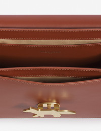 DETAILS Large smooth leather Edie bag with shoulder strap. - Large Edie bag in smooth matte leather - Crossbody and shoulder wear - Flap with Profile Fox hasp clasp in gold metal - Adjustable shoulder strap from 96 cm to 122 cm - Strap with buckle, loops, and with collar studs - Gold embossed Maison Kitsune logo at the back - Three interior compartments of which one main - Patch pockets and leather interior cardholders - Twill lining - Dimensions: 18 x 24 x 8 cm - Clean with a slightly damp cloth - Protective pouch included with bag OW05171LR0001-P280 SIZE & CUT Sizing: UNISEX MATERIAL Exterior: 100% BOVINE LEATHER, Interior: 100% COTTON TRACEABILITY Made in Tunisia