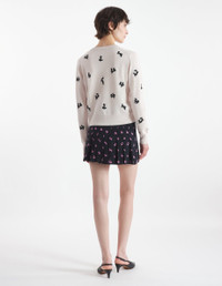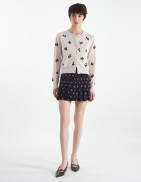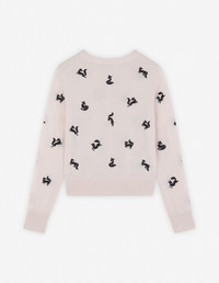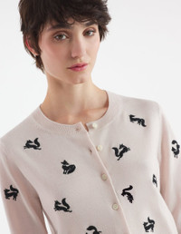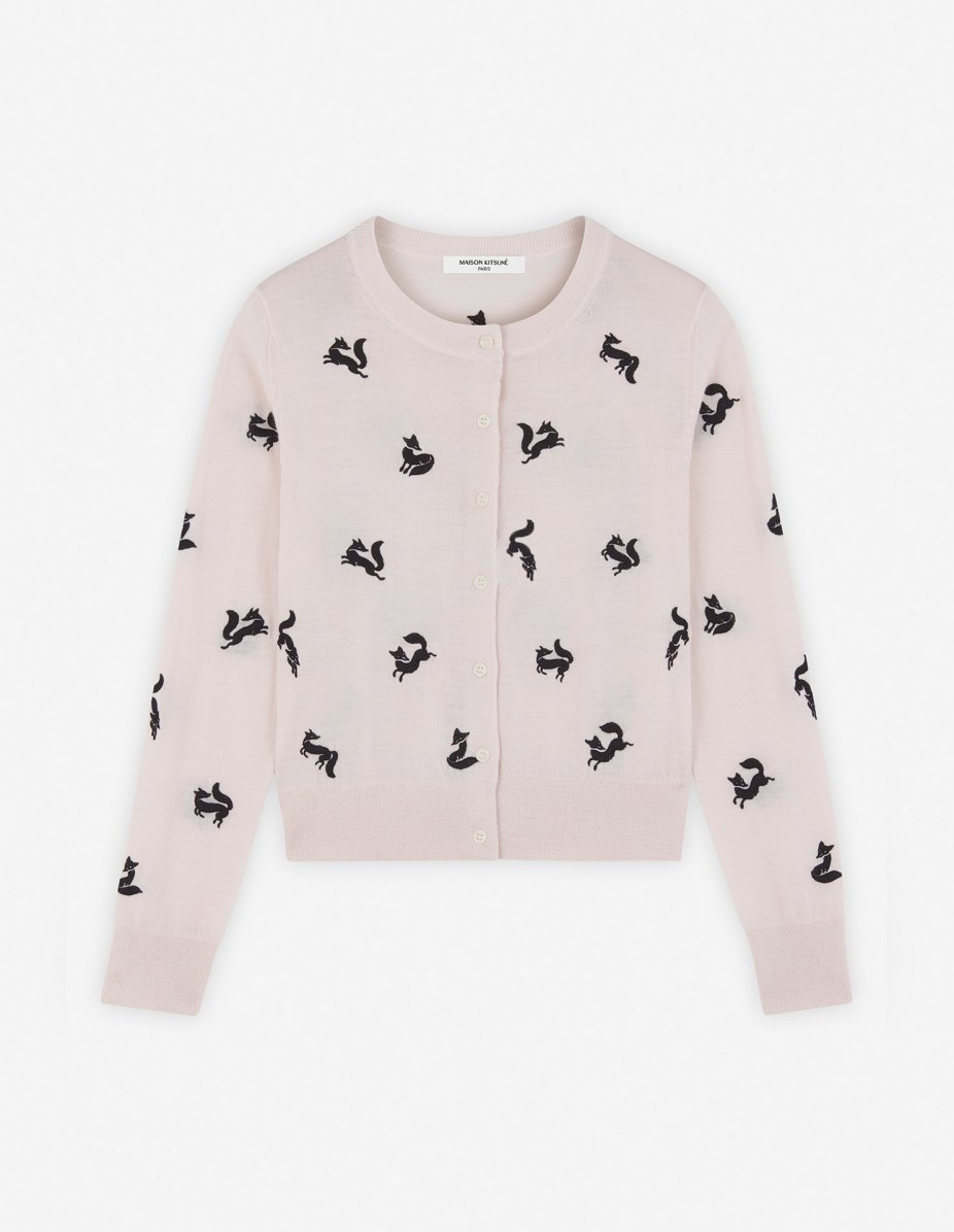 DETAILS Long sleeve embroidered knit cardigan. Regular fit with all-over Fancy Fox embroidered on the chest. - Embroidered knit cardigan - Regular fit - Crewneck - Mother-of-pearl button closure - Long sleeves - Ribbing at the neckline, cuffs, and waist - All-over contrast Fancy Fox embroidery NW00504KF0001-P705 SIZE & CUT Cut: REGULAR Sizing: WOMEN The female model is 5.7 and is wearing size S MATERIAL 15% POLYESTER, 85% WOOL TRACEABILITY Made in China