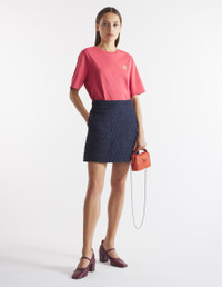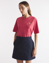 DETAILS Short sleeve cotton t-shirt. Comfort fit with Speedy Fox patch embroidered on the chest. - Plain cotton t-shirt - Comfort fit - Rib-knit trim crewneck - Short sleeves - Reinforced seams at the sleeves and waist - Embroidered Speedy Fox patch on the chest MW00119KJ0008-P642 SIZE & CUT Cut: COMFORT Sizing: WOMEN The female model is 5.7 and is wearing size S MATERIAL 100% COTTON TRACEABILITY Made in Portugal