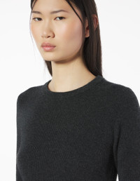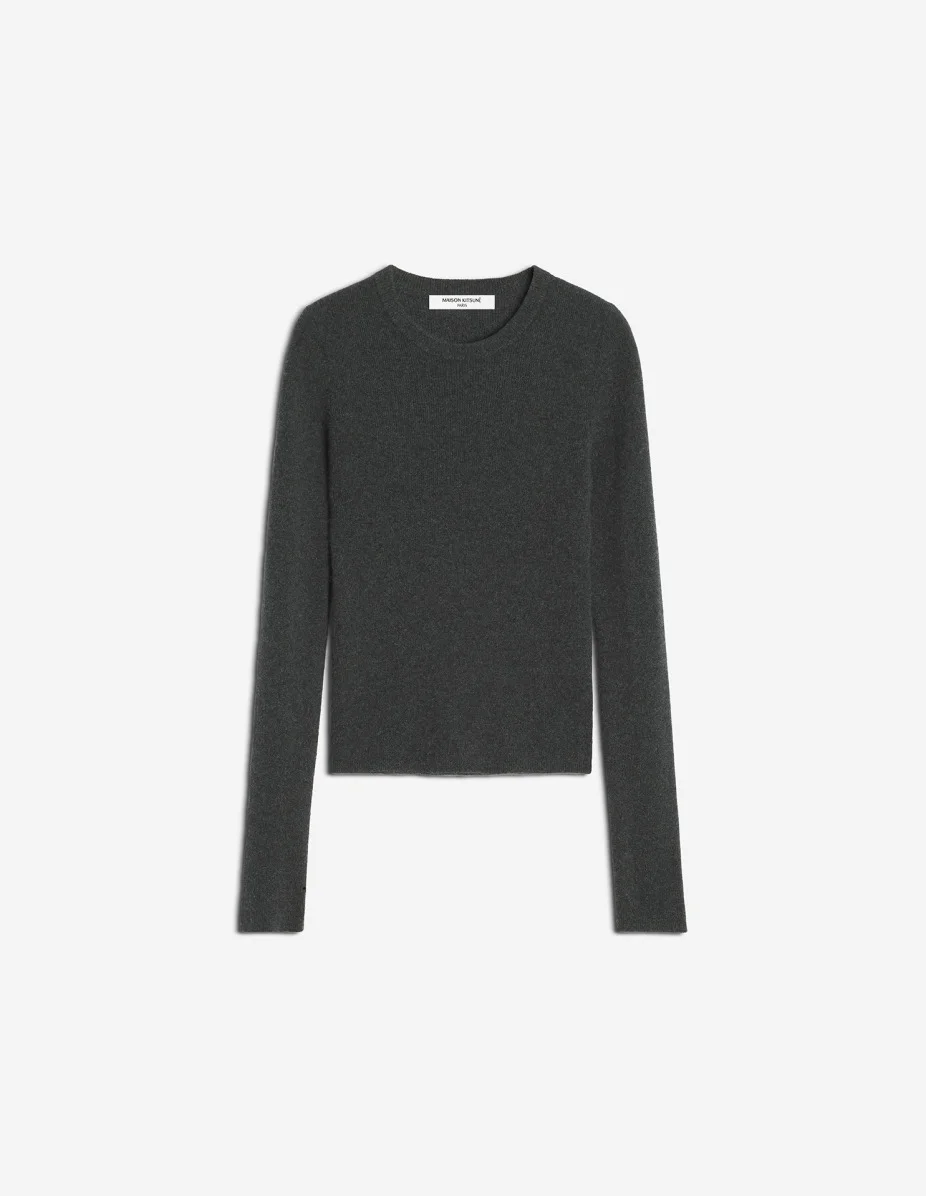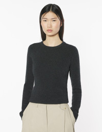 DETAILS 100% cashmere fine rib jumper. Fitted, cropped fit with Maison Kitsune Handwriting signature embroidered at the back. - Pure cashmere fine rib jumper - Fitted cropped fit - Crew neck - Long sleeves - Rib finishing at the neckline, cuffs and waist - Tonal Maison Kitsune Handwriting signature embroidered at the back PW00816KT1172-P180 SIZE & CUT Cut: FITTED Sizing: WOMEN The female model is 5.7 and is wearing size S MATERIAL 100% CASHMERE TRACEABILITY Made in China