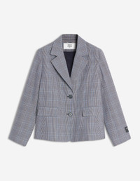 DETAILS Fitted tailored jacket in Japanese wool blend with Prince of Wale pattern. - Tailored jacket in Japanese wool blend - Prince of Wales pattern woven in the fabric - Fitted fit - Two front flap pockets - Two-button closure - Fox Column label applied at the cuff and Profile fox chain at the interior neckline PW02111WT3013-0361 SIZE & CUT Cut: FITTED Sizing: WOMEN The female model is 5.7 and is wearing size 36 MATERIAL Main Material: 50% POLYESTER, 50% WOOL, Lining: 49% COTTON, 51% VISCOSE TRACEABILITY Made in Portugal