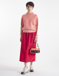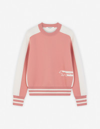 DETAILS Long sleeve technical knit jumper. Regular fit with intarsia Flash Fox on the front side. - Bicolor technical knit jumper - Regular fit - Crewneck - Long sleeves - Ribbing at the neckline, cuffs, and waist - Contrast intarsia Flash Fox on the front side NW00803KM0327-P634 SIZE & CUT Sizing: WOMEN The female model is 5.7 and is wearing size S MATERIAL 55% COTTON, 45% POLYAMIDE TRACEABILITY Made in China