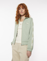DETAILS Zipped blouson in technical fleece. Relaxed cut with Flash Fox silicone patch. - Zipped blouson in technical fleece - Relaxed cut - High collar - Zipper closure - Flash Fox silicone patch on the chest - Long sleeves with Flash Fox braid - Two side pockets - Plain back OW02134KM0322-0094 SIZE & CUT Sizing: WOMEN The female model is 10 and is wearing size S MATERIAL 47% COTTON, 53% POLYAMIDE TRACEABILITY Made in Portugal