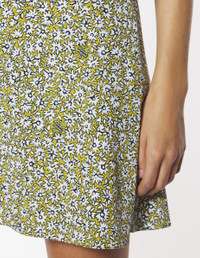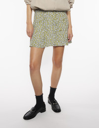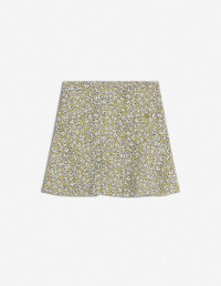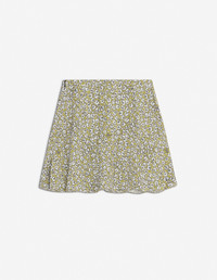 DETAILS Crepe Daisy Field print miniskirt. Flared cut with Maison Kitsune Handwriting signature integrated into the motif. - Crepe Daisy Field print miniskirt with Maison Kitsune Handwriting signature integrated into the motif - Flared cut with godets - Thin waistband - Hook-and-eye closure with invisible side zip - Satin lining OW01529WF4037-0198 SIZE & CUT Cut: MINI Sizing: WOMEN The female model is 5.5 and is wearing size S MATERIAL Main Material: 100% VISCOSE, Lining: 68% ACETATE, 32% POLYESTER TRACEABILITY Made in Poland