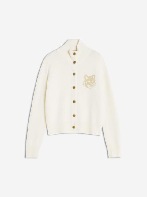 FOX HEAD INTARSIA MERINO HIGH NECK CARDIGAN