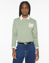 DETAILS Merino wool jumper with long sleeves. Regular fit, Fox Head intarsia on the chest. - Merino wool jumper - Regular fit - Crew neck - Long sleeves - Ribbing at the neckline, cuffs and hem - Fox Head intarsia on the chest NW00808KM0329-0396 SIZE & CUT Cut: REGULAR Sizing: WOMEN The female model is 5.7 and is wearing size S MATERIAL 100% WOOL TRACEABILITY Made in China