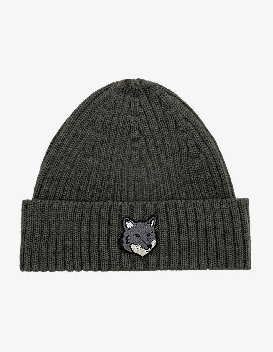 DETAILS Virgin wool beanie with embroidered Grey Fox Head patch on the cuff. - Plain virgin wool beanie - Grey Fox Head embroidered patch on the turn-up PM06112KT1022-P131 SIZE & CUT Sizing: UNISEX MATERIAL 100% WOOL TRACEABILITY Made in Morocco