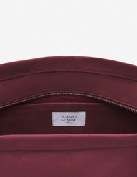 DETAILS Large “Fox Head” tote bag in thick coated canvas. - Large tote bag in plain thick coated canvas - Handheld and shoulder wear - Tonal handles - Patch front pocket - Tonal Fox Head embroidery on the front pocket - Tonal embroidered "Maison Kitsune Handwriting" signature at the back - Zipped closure with engraved Profile Fox slider - Interior patch pocket - Woven label with contrast “Maison Kitsune” logo on the pocket - Twill lining - Dimensions: 48,5x36x14 cm LW05104WW0107-P677 SIZE & CUT Sizing: WOMEN MATERIAL Exterior: 100% COTTON, Interior: 100% COTTON TRACEABILITY Made in China