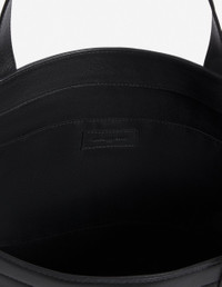 DETAILS Medium Fox Head tote bag in leather. - Medium tote bag in soft cow leather - Two large handles for hand and shoulder carry - Removable shoulder strap with engraved carabiner hooks and adjustable buckle - Front patch pocket with embossed Fox Head - Gold embossed Maison Kitsune logo at the back - Zipper closure with engraved Profile Fox slider - Lining and interior pocket in twill - Jacron with Maison Kitsune logo on the pocket - Twill lining - Dimensions: 22 x 15 x 7.5 cm OW05110LC0045-P199 SIZE & CUT Sizing: UNISEX MATERIAL Main Material: 100% BOVINE LEATHER, Lining: 100% COTTON TRACEABILITY Made in Morocco