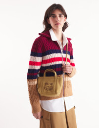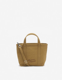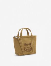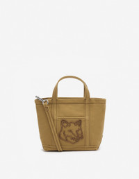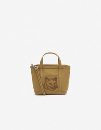DETAILS Mini “Fox Head” tote bag in thick coated canvas. - Mini tote bag in plain thick coated canvas - Handheld, shoulder, and crossbody wear - Tonal handles - Removable strap with engraved carabiner clasp and adjustable with buckle - Patch front pocket - Tonal embroidered "Maison Kitsune Handwriting" signature at the back - Zipped closure with engraved Profile Fox slider - Interior patch pocket - Woven label with contrast “Maison Kitsune” logo on the pocket - Twill lining - Dimensions: 22x15x7,5 cm MW05106WW0107-P252 SIZE & CUT Sizing: WOMEN MATERIAL 100% COTTON TRACEABILITY Made in China