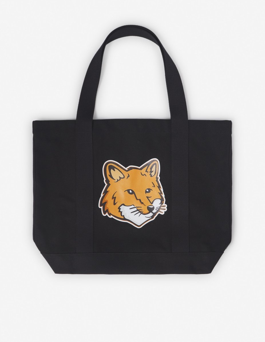 DETAILS Canvas tote bag with Fox Head embroidery at the front and “Maison Kitsune” at the back. - Canvas tote bag - Grosgrain handles for handheld wear - “Maison Kitsune” interior label - Topstitched seams - Embroidered Bold Fox at the front and Maison Kitsune at the back - Dimensions: 43x32,5 cm LW05101WW0050-P199 SIZE & CUT Sizing: WOMEN MATERIAL Exterior: 100% COTTON TRACEABILITY Made in China