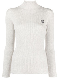 fox-motif high-neck jumper Inspired by a Japanese shapeshifter mythical creature, the fox motif by Maison Kitsune symbolises the brand's fluid spirit. Here, it decorates this high-neck jumper, lending it an instantly recognisable look. Highlights - Light grey - Cotton-wool blend - Knitted construction - Ribbed knit - Signature fox motif - High neck - Long sleeves - Straight hem Imported Composition Wool 50%, Cotton 50% SIZE & FIT Measurement SLEEVE LENGTH 23.62 in(60 cm) Shoulder Width 12.59 in(32 cm) LENGTH 23.62 in(60 cm) BUST 26.77 in(68 cm) FittingInformation Designed for a slim fit that sits just away from the body offering a close yet comfortable fit Made with a lightweight knit, this piece offers some stretch This piece fits true to size – take your usual size