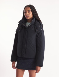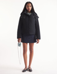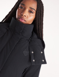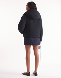 DETAILS Technical material puffer jacket with removeable hood. Regular fit with silicon Fox Head patch on the chest. - Plain technical material puffer jacket - Regular fit - High collar - Removable zipped hood - Hidden zipper and snap closure - Interior drawstring waist with stoppers - Long sleeves - Ribbed cuffs - Two welt side pockets - Tonal silicon Fox Head patch on the chest - Quilted lining - Interior zipped pocket NW02202WQ4031-P199 SIZE & CUT Cut: REGULAR Sizing: WOMEN The female model is 5.8 and is wearing size S MATERIAL Main Material: 100% POLYESTER, Stuffing material: 10% FEATHER, 90% DUCK DOWN, Lining: 100% POLYESTER TRACEABILITY Made in China