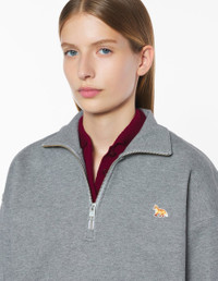 DETAILS Half zip fleece sweatshirt, comfort fit and Baby Fox embroidered patch. - Fleece sweatshirt - Organic cotton - Comfort fit - Half-zip stand-up collar - Rib finishing at collar, cuffs and hem - Baby Fox embroidered patch on the chest PW00308KM0341-H131 SIZE & CUT Cut: COMFORT Sizing: WOMEN The female model is 5.7 and is wearing size S MATERIAL Main Material: 100% COTTON, RIB: 98% COTTON, 2% ELASTANE TRACEABILITY Made in Portugal