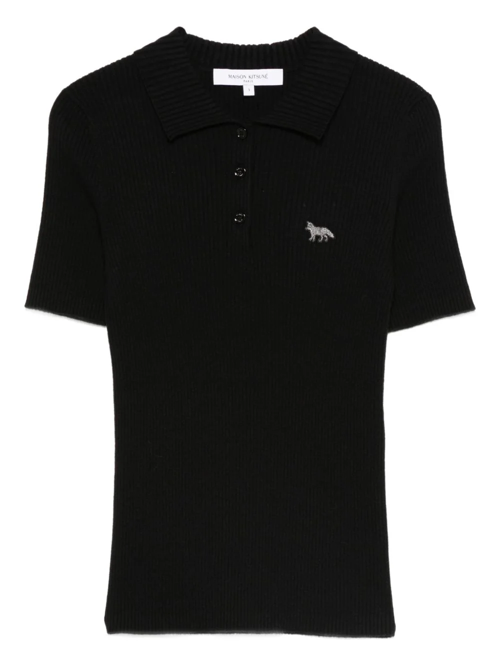 knitted polo shirt Highlights - Black - Ribbed knit - Front button placket - Short sleeves Imported Composition Cotton 100% SIZE & FIT Model measurements Height 5 ft 8 in(1.73 m) Bust/Chest 29.92 in(76 cm) Hips 33.07 in(84 cm) Waist 23.22 in(59 cm) Washing instructions Read Manufacturer Guidelines