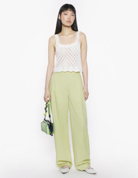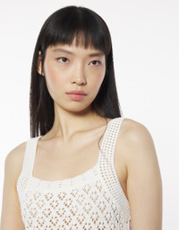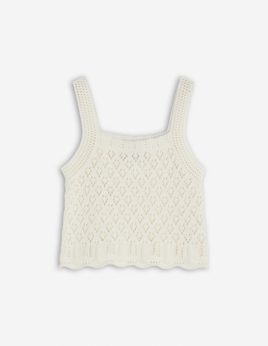 DETAILS Pointelle knit tank top. Cropped cut with Profile Fox embroidery. - Pointelle cotton-knit tank top - Square neckline - Rib-knit neckline and straps - Tone-on-tone Profile Fox embroidery at the back - Scalloped trim at the hem OW00606KT1127-P204 SIZE & CUT Cut: CROPPED Sizing: WOMEN The female model is 5 and is wearing size S MATERIAL 100% COTTON TRACEABILITY Made in Bulgaria