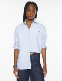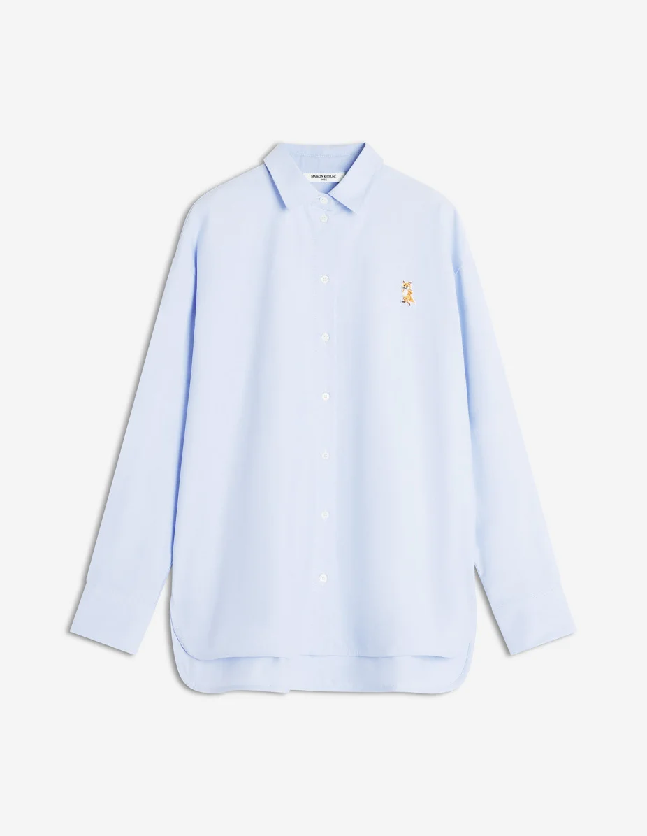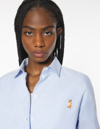 DETAILS Casual cotton oxford shirt. Regular fit with embroidered Lady Fox patch. - Casual cotton oxford shirt - Regular fit - Classic collar - Maison Kitsune engraved button closure - Lady Fox embroidered patch on the chest - Long sleeves finished with a buttoned straight cuff - Rounded hem - Plain back PW00401WC5062-0334 SIZE & CUT Cut: REGULAR Sizing: WOMEN The female model is 5.7 and is wearing size 36 MATERIAL 100% COTTON TRACEABILITY Made in Portugal