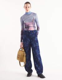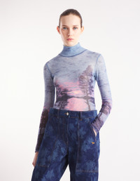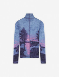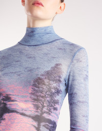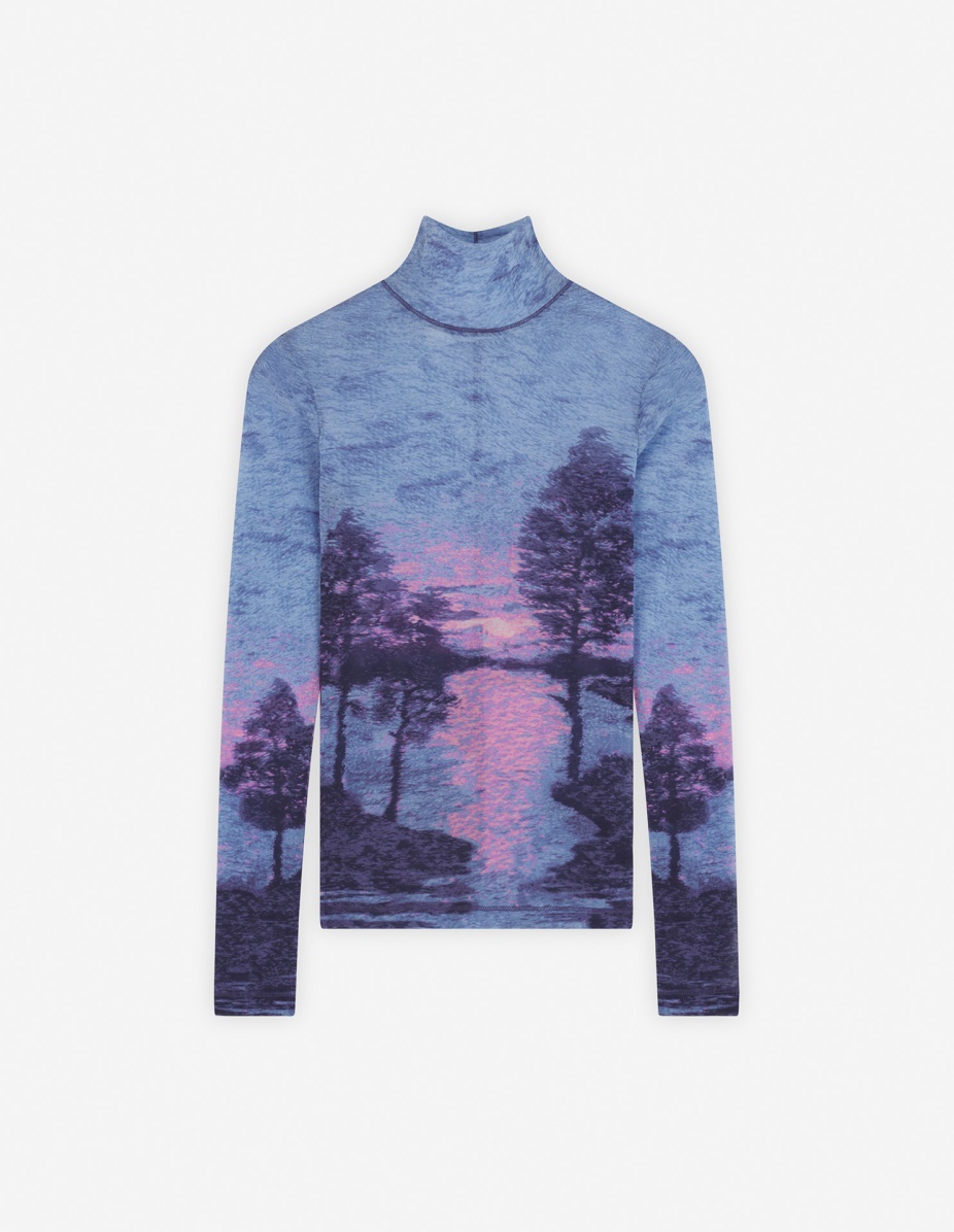 DETAILS Long sleeve mesh top with all-over Landscape print. - Mesh top with all-over landscape print - Fitted fit - High neck - Long sleeves - Visible overlocked finishes NW00417KJ0122-P445 SIZE & CUT Cut: FITTED Sizing: WOMEN MATERIAL 100% POLYAMIDE TRACEABILITY Made in Portugal