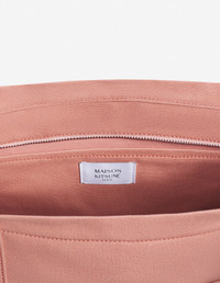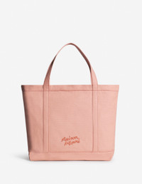 DETAILS Large Fox Head tote bag in heavy coated canvas. - Large tote bag in heavy coated plain canvas - Two large handles for hand and shoulder carry - Front patch pocket with tone-on-tone Fox Head embroidery - Tone-on-tone Maison Kitsune Handwriting signature embroidered at the back - Zipper closure with engraved Profile Fox slider - Interior patch pocket with woven label with contrasted Maison Kitsune logo - Twill lining - Dimensions: 48.5 x 36 x 14 cm LW05104WW0107-0088 SIZE & CUT Sizing: UNISEX MATERIAL Exterior: 100% COTTON, Interior: 100% COTTON TRACEABILITY Made in China