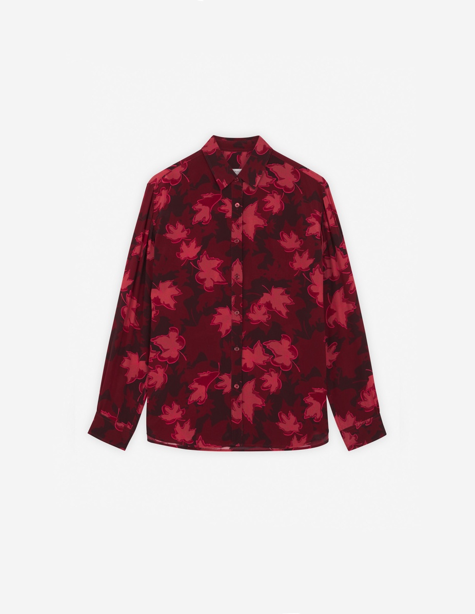DETAILS classic fluid shirt in Falling Leaves printed crepe. - classic fluid shirt in Falling Leaves printed crepe - classic fit - Shirt collar - Button closure - Long sleeves finished off with button straight cuffs - Gathers at the back NW00418WF4032-P660 SIZE & CUT Cut: REGULAR Sizing: WOMEN MATERIAL 100% VISCOSE TRACEABILITY Made in Bulgaria