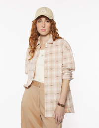 DETAILS Light cotton twill overshirt. Relaxed cut with Fox Check motif. - Light cotton twill overshirt with Fox Check motif - Relaxed cut - Shirt collar - Engraved button closure - Long sleeves finished off with straight button cuffs - Back pleat - Rounded hem OW00431WW0118-0201 SIZE & CUT Cut: RELAXED Sizing: WOMEN The female model is 10 and is wearing size S MATERIAL 100% COTTON TRACEABILITY Made in Portugal