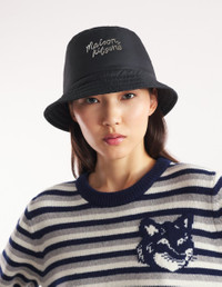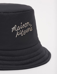 DETAILS Plain Nylon puffer bucket hat. Unisex with silicon "Maison Kitsune Handwriting" signature at the front. - Plain Nylon puffer bucket hat - Unisex - Topstitched edges - Silicon "Maison Kitsune Handwriting" signature at the front NM06115WQ4035-P199 SIZE & CUT Sizing: MEN MATERIAL 100% POLYAMIDE TRACEABILITY Made in China