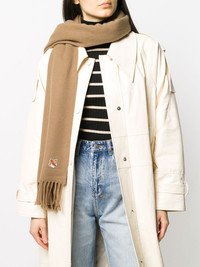 logo-patch fringed scarf Highlights - Beige - Virgin wool - Logo patch to the front - Fringed edge Made in Italy Composition Virgin Wool 100% SIZE & FIT Model measurements Height 5 ft 10 in(1.78 m) Bust/Chest 31.49 in(80 cm) Hips 36.22 in(92 cm) Waist 25.59 in(65 cm) Measurement LENGTH 78.74 in(200 cm) WIDTH 29.52 in(75 cm) Washing instructions Dry Clean Only