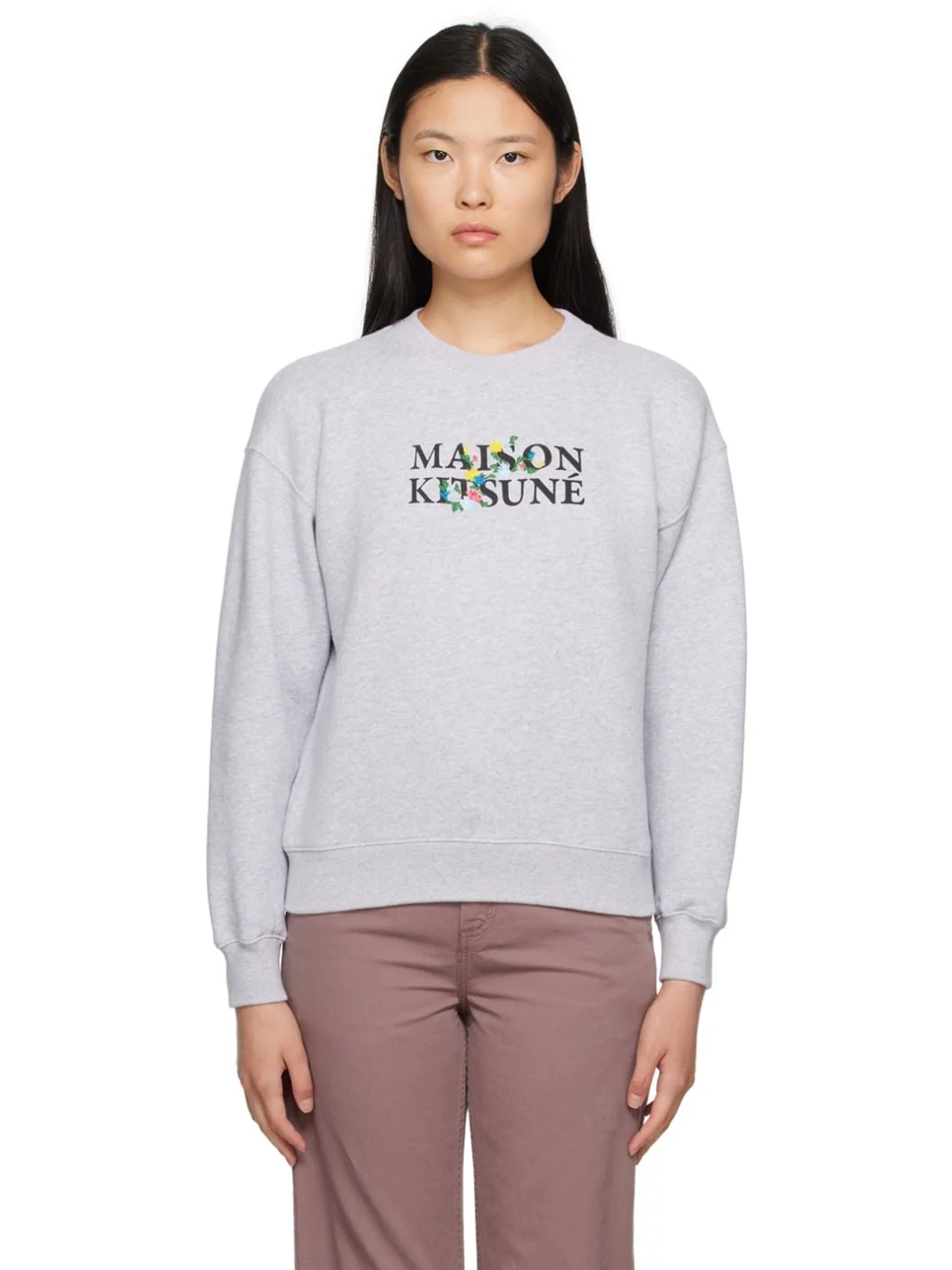 Cotton fleece sweatshirt. · Rib knit crewneck, hem, and cuffs · Logo graphic printed and embroidered at front · Dropped shoulders Supplier color: Light grey melange 100% cotton. Made in Portugal 232389F098025