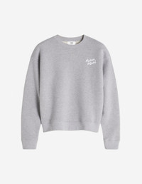 DETAILS Fleece sweatshirt. Comfort fit with Maison Kitsune Handwriting signature embroidered on the chest. - Plain fleece sweatshirt - Organic cotton - Comfort fit - Crew neck - Rib finishing at the neckline, cuffs and hem - Contrasted Maison Kitsune Handwriting signature embroidered on the chest PW00314KM0341-0357 SIZE & CUT Cut: COMFORT Sizing: WOMEN The female model is 5.7 and is wearing size S MATERIAL Main Material: 100% COTTON, RIB: 98% COTTON, 2% ELASTANE, 100% COTTON TRACEABILITY Made in Portugal
