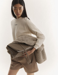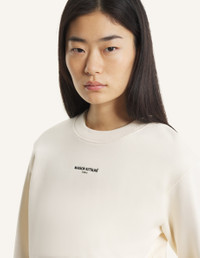 DETAILS Casual cotton fleece cropped sweatshirt. Maison Kitsune Paris embroidery at the chest. - Sweatshirt in casual fleece (440g) - Cropped fit - Crew neck - Maison Kitsune Paris embroidery at the front - Ribbing at the neckline, cuffs, and bottom QW00300KM0341-0063 SIZE & CUT Cut: CROPPED Sizing: WOMEN The female model is 5.8 tall and wears a size S MATERIAL Main Material: 100% ORGANIC COTTON, RIB: 2% ELASTANE, 98% ORGANIC COTTON TRACEABILITY Made in Portugal