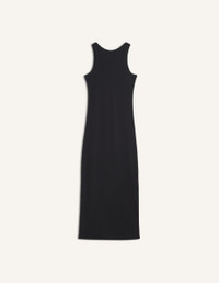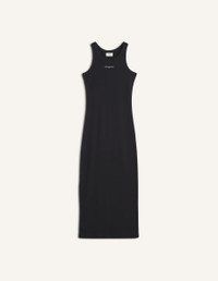 DETAILS Long tank dress in cotton classic rib. Maison Kitsune Paris print on the chest. - Ribbed tank dress - Long length - Sleeveless - Round neckline - Slit on the right side for ease - Maison Kitsune Paris rubber print on the front QW01650KA0033-P199 SIZE & CUT Cut: LONG Sizing: WOMEN MATERIAL 100% ORGANIC COTTON TRACEABILITY Made in Portugal