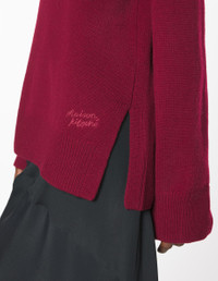 DETAILS Thick merino wool turtleneck jumper. Embroidered Maison Kitsune Handwriting signature. - Thick merino wool jumper - Comfort fit - Turtleneck - Long sleeves - Rib finishing at collar, cuffs and hem - Slits at the bottom for more ease - Heavy-gauge knit - Tonal Maison Kitsune Handwriting signature embroidered at the bottom left PW00813KT1171-0143 SIZE & CUT Cut: COMFORT Sizing: WOMEN The female model is 5.7 and is wearing size S MATERIAL 100% WOOL TRACEABILITY Made in China