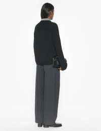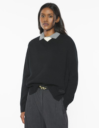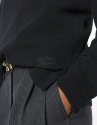 DETAILS Thick merino wool jumper with V-neck, comfort fit, Maison Kitsune Handwriting signature embroidery. - Chunky merino wool jumper - Comfort fit, generouse volume easy to layer - V neck - Long sleeves - Rib finishing at neckline, cuffs and hem - High-gauge knit - Tonal Maison Kitsune Handwriting signature embroidered at the bottom left PW00815KT1171-P199 SIZE & CUT Cut: COMFORT Sizing: WOMEN The female model is 5.7 and is wearing size S MATERIAL 100% WOOL TRACEABILITY Made in China