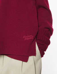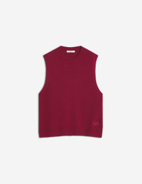DETAILS Merino wool vest. Maison Kitsune Handwriting signature embroidered. - Thick merino wool vest - Comfort fit - Crew neck - Rib finishing at neckline, shoulders and bottom - Slits at the bottom for more ease - Tonal Maison Kitsune Handwriting signature embroidered at the bottom left PW00608KT1171-0143 SIZE & CUT Cut: COMFORT Sizing: WOMEN The female model is 5.7 and is wearing size S MATERIAL 100% WOOL TRACEABILITY Made in China