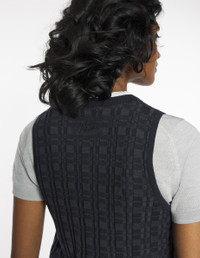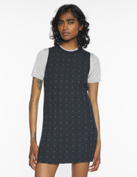 DETAILS Sleeveless mini dress in ribbed merino wool check. - Ribbed merino wool knit dress with check pattern - Fitted - Mini length - Crew neck - Sleeveless - Tonal Maison Kitsune Handwriting signature embroidered at the back PW01608KT1170-0379 SIZE & CUT Cut: MINI Sizing: WOMEN The female model is 5.7 and is wearing size S MATERIAL 100% WOOL TRACEABILITY Made in China