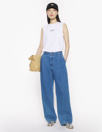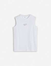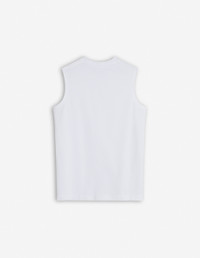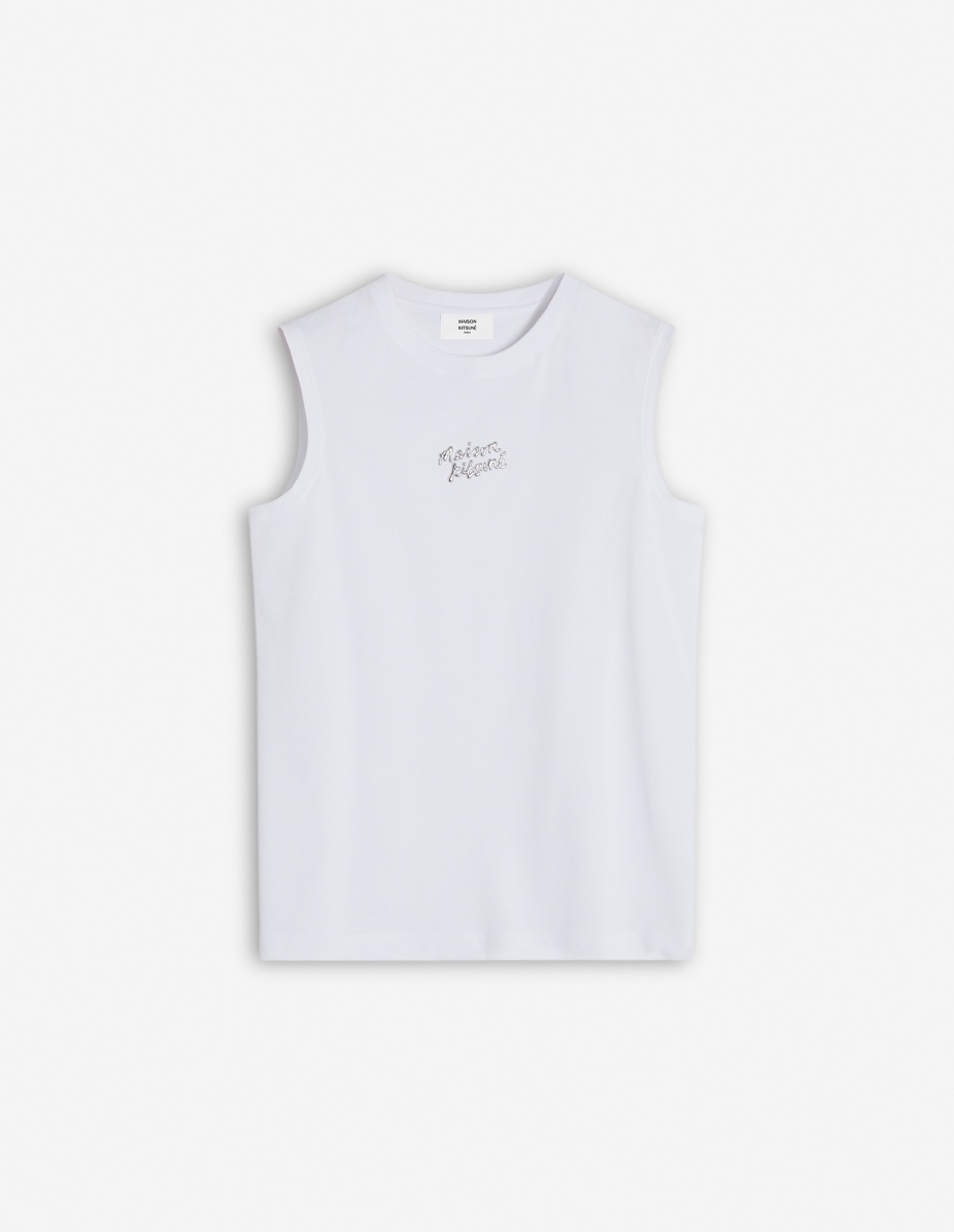 DETAILS Plain cotton tank top. Comfort cut with Metallic Maison Kitsune. - Cotton jersey tank top - Comfort cut - Crewneck - Ribbing at the neckline and armholes - Metallic Maison Kitsune at the front OW00615KJ0119-P100 SIZE & CUT Cut: COMFORT Sizing: WOMEN The female model is 5 and is wearing size S MATERIAL 100% COTTON TRACEABILITY Made in Portugal