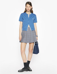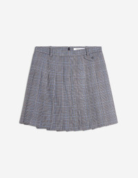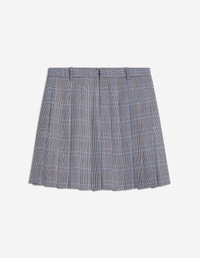 DETAILS Pleated mini skirt in Japanese Prince of Wales wool. - Pleated mini skirt in Japanese wool blend - Prince of Wales pattern woven in fabrics - Mini length - Waistband with belt loops - Hidden back zip fastening - Front flap pocket with gold-tone Profile Fox branded button on flap PW01508WT3013-0361 SIZE & CUT Cut: MINI Sizing: WOMEN The female model is 5.7 and is wearing size 36 MATERIAL Main Material: 50% POLYESTER, 50% WOOL, Lining: 49% COTTON, 51% VISCOSE TRACEABILITY Made in Poland