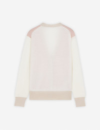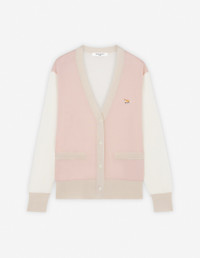 DETAILS Long sleeve colorblock merino wool cardigan. Comfort fit with embroidered Baby Fox patch on the chest. - Colorblock merino wool cardigan - Comfort fit - V-neck - Closure with engraved horn buttons - Contrast long sleeves - Two patch front pockets - Contrast ribbing at the neckline, cuffs, waist, and pockets - Embroidered Baby Fox patch on the chest MW00505KT1036-P628 SIZE & CUT Cut: REGULAR Sizing: WOMEN The female model is 5.7 and is wearing size S MATERIAL 100% WOOL TRACEABILITY Made in Portugal