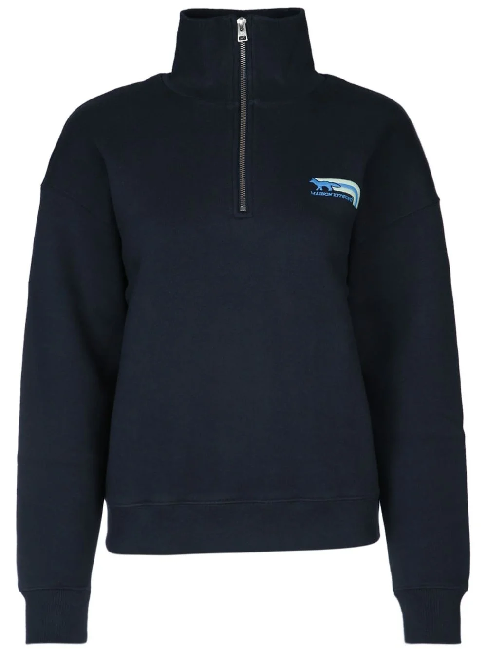 embroidered sweatshirt Highlights - Navy blue - Half front zip fastening - Stand-up collar - Long sleeves - Straight hem Imported Composition Cotton 100%