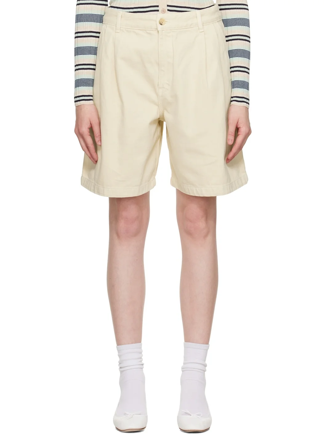 Overdyed non-stretch denim shorts. · Belt loops · Four-pocket styling · Zip fly · Pleats at front · Leather logo patch at back waistband · Logo embroidered at back Supplier color: Paper 100% cotton. Made in Tunisia 251389F088000